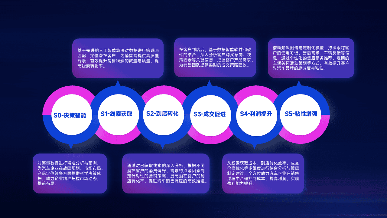 通过拓宽潜在客户来源、、优化线索分配并提高到店转化率,,,,以增强销售效率。。同时,,,,利用线索数据不断优化分析模型,,,,有效提升转化率,,,,扩大营销影响力。。